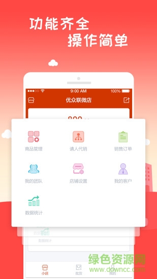 添加商品、查看订单、管理客户、数据统计、创建团队...功能齐全,操作简便。