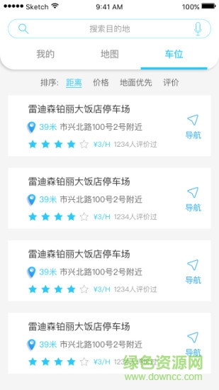 2.当然,也会有详细的信息提供,包括距离多远,停车位的星级等;