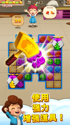 :凭借各种强大的游戏道具,你可以摆脱一切障碍,比如饼干,巧克力监狱和巧克力砖!