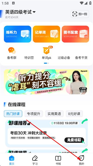 1、打开星火英语app,点击底部导航栏的我的选项。