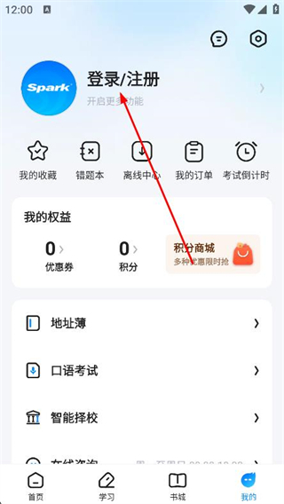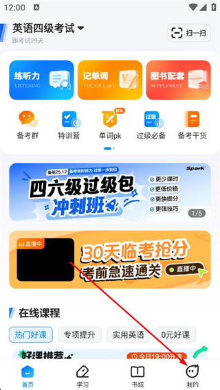 1、打开星火英语APP,点击底部导航栏我的选项。