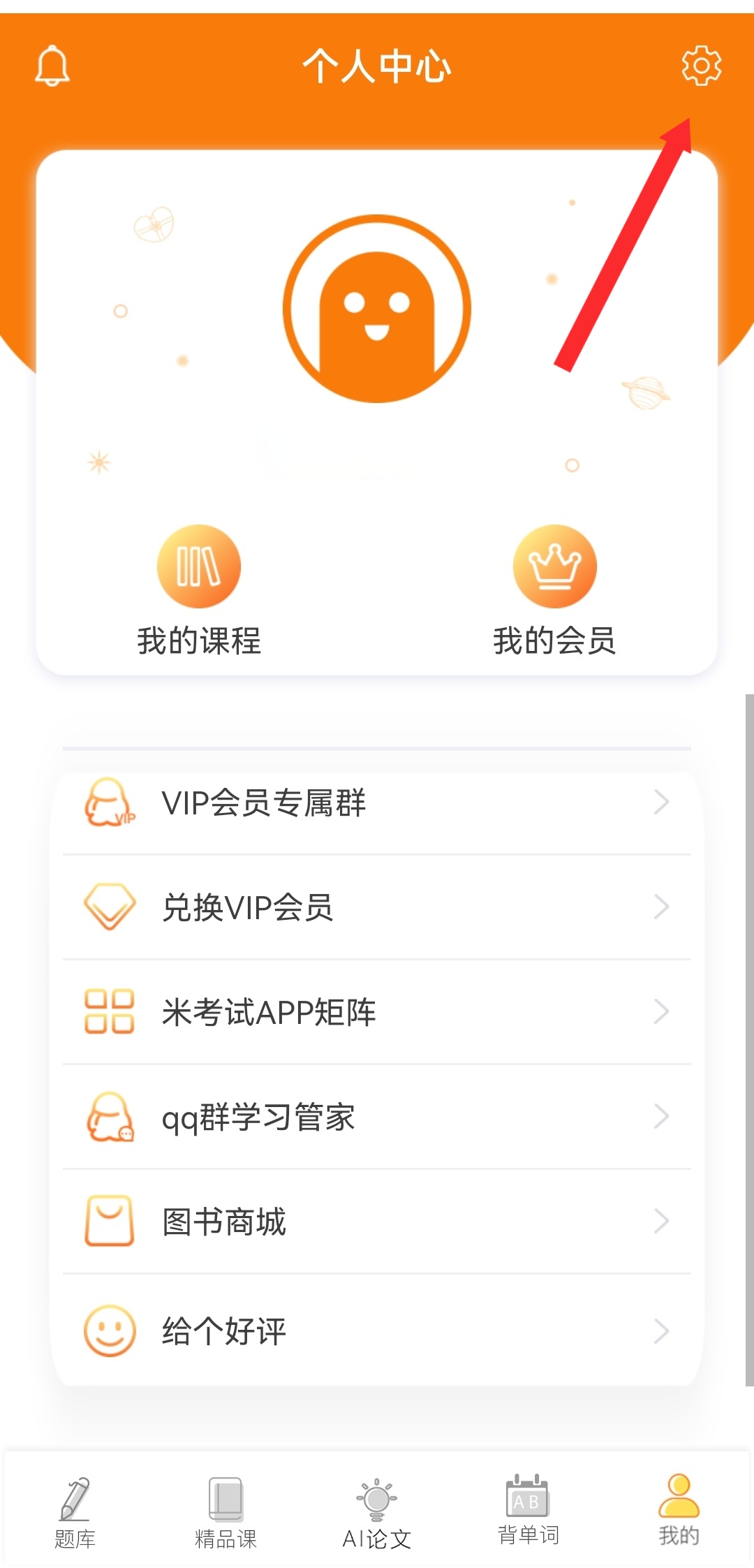 1、进入个人中心页面后,点击右上角设置图标,进入设置界面。