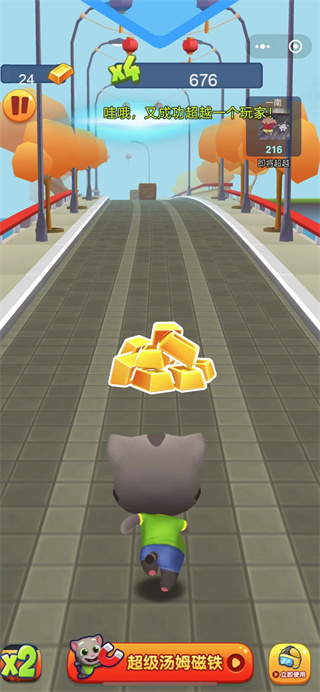 除此之外,《汤姆猫跑酷》还有丰富的活动和奖励,每天都会有不同的任务和挑战等着你来完成,完成任务可以获得金币和奖励,而奖励又可以用来解锁更多的角色和道具。同时,还有排行榜和好友互动功能,你可以和自己的好友们一起来挑战和比拼,看看谁是真正的高手。