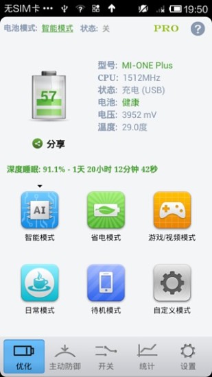 One省电卫士是一款手机省电工具,它采用独一无二的内核,让您的安卓设备大大延长电量和待机时间。它的原理是通过优化系统内核、调节CPU和IO、调整WIFI参数,并优化充电参数以避免系统过热,它还能安全查杀耗电进程和主动防御耗电应用,使设备完全进入深度睡眠等等,大大提升设备性能,并延长设备待机时间和电池寿命,节省70%~80%的电量。