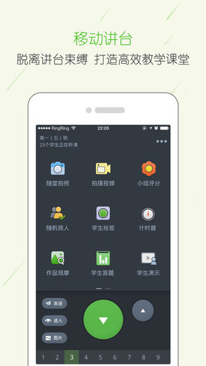 教师可随时离开固定讲台,移步到学生中间通过手机便捷控制电子白板的上课内容,一边教学一边与学生进行课堂互动,让教学过程更轻松、流畅和高效。