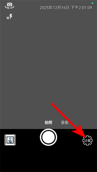 1.打开时间相机应用,点击右下角的设置按钮进入设置界面。