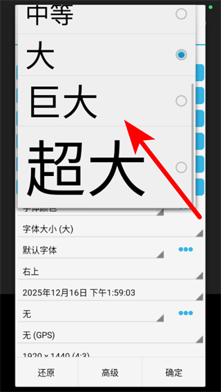3、在字体大小选择菜单里,挑选想要设置的字体尺寸如巨大。
