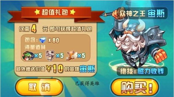 3.当英雄强化到一定的等级,会出大招,每个英雄对应的大找不同