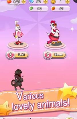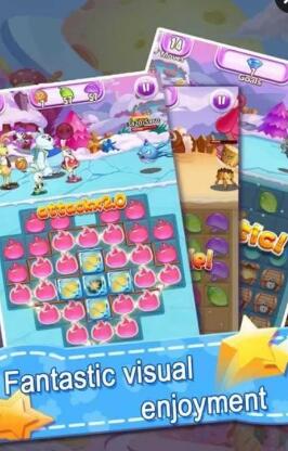 连接三个或更多相同的糖果或水果得分,消除在一行中更多的元素,你会得到更多的额外的得分点。管理可爱的人物,发现他们的特殊技能,打不同的怪物来获得超棒的礼物。更多玩法等你来挖掘~