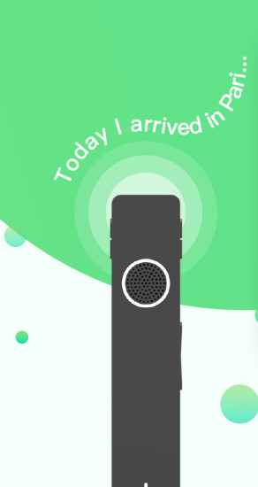 2.一键边说边录, 文字显示在 APP 上面, 有时间, 有文字, 可复制, 可保存, 可分享、可翻译;