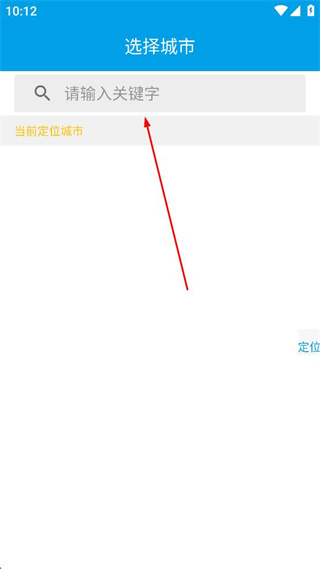3、在选择城市界面,点击上方的搜索框,准备输入关键字来选定对应的使用城市。