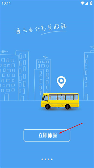 2、进入通卡出行为您服务页面,找到界面中的立即体验按钮,点击该按钮进入选择城市界面。