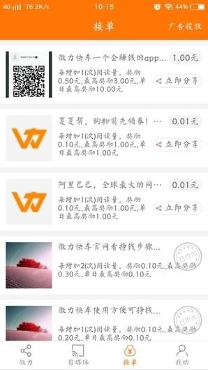 微力快车app是一款专门为营销而推出的手机软件,在这里不仅可以在线领取任务,还可以在线浏览新闻热点等等,不仅可以赚钱,还可以娱乐!喜欢的朋友赶紧到绿色资源网下载吧!