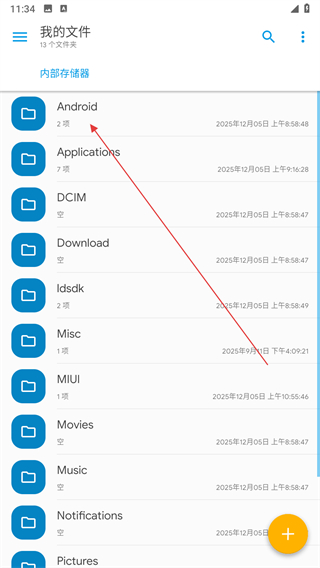 1、打开SE文件管理器,进入我的文件页面,点击界面右下角的黄色+按钮。