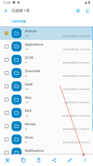 2、选中文件夹后,点击右侧的更多选项按钮。