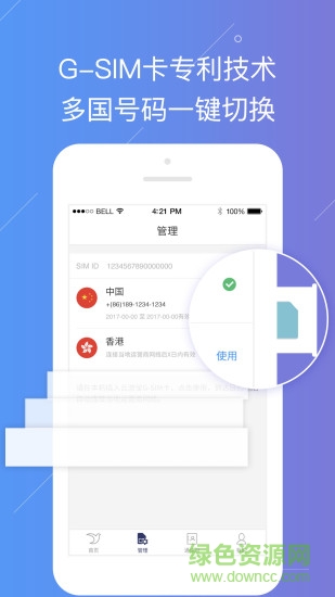 一卡多号 尊享多国号码;告别繁琐设备 多国号码一键切换;尽享通讯便利 一卡尊享全球通信;消除割据壁垒 真正实现通讯无界