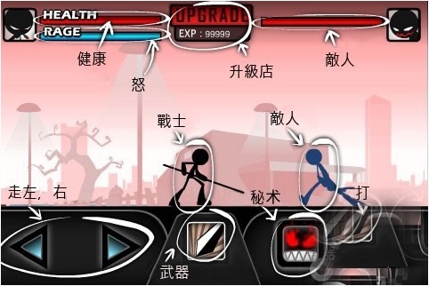 3.每次你击败一个对手,你的愤怒会上升,你可以使用主连击干掉整个屏幕;