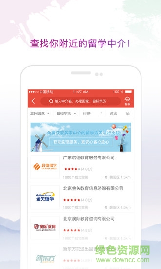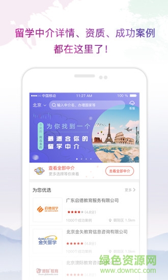 4.基于LBS定位,迅速筛选你附近的优质留学机构并提供便捷路线,省去查地图的烦恼。也可根据目标学历、意向国家、中介资质等自行筛选。