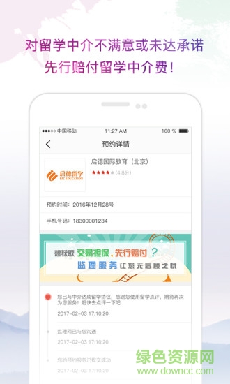 留学监理服务——全程监督留学中介服务过程,并在每个环节向学生通报进展和风险,如学生对留学中介服务不满意或为达约定,由我们先行调解,协调无果按约定先行赔付中介费费用。