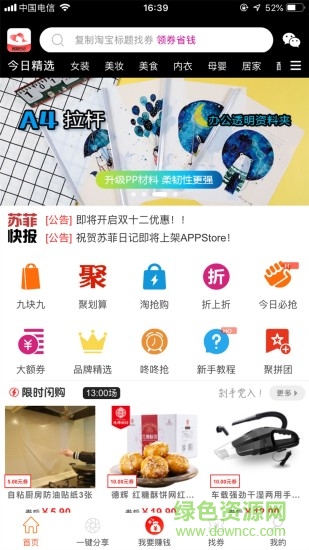 苏菲日记软件是一款非常好用的网购优惠券app,精选优质商品,每天都有众多优惠券推出,各大品牌一应俱全,并且还会放出一些隐藏的大额优惠券,欢迎喜爱的朋友到绿色资源网下载体验!