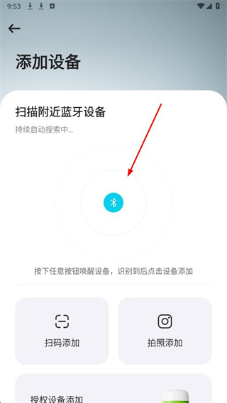 3、开启蓝牙,扫描附近设备,唤醒识别到后,点击设备完成添加操作。