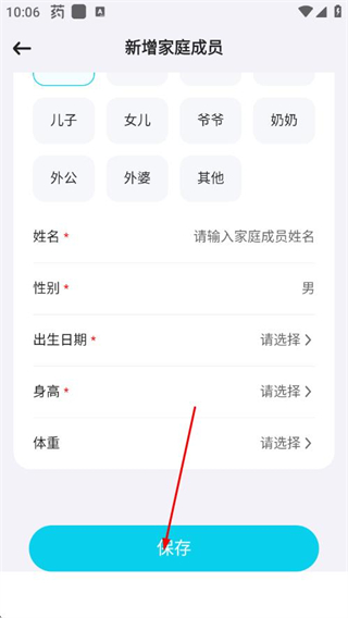 3、信息填写完成后,点击底部的保存,完成家庭成员的添加。
