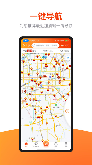 微油通过定位车主所在位置,显示附近中石油加油站信息和油价信息,并且提供导航功能,让车主方便到达附近加油站。