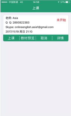 上课页面可以查看约课明细,到达约课时间点击“上课 ”进行在线学习。