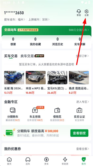 1、在瓜子二手车主界面,点击底部我的,进入个人功能页。