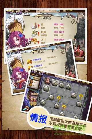 游戏中不仅提供了商品倒卖的贸易手段,还提供了货物囤积和长途贩运这两种特殊的贸易方式。对于喜欢经营的玩家来说,如何获得最大利益,怎样升级船只等等,都具有了更多的策略性和趣味性。