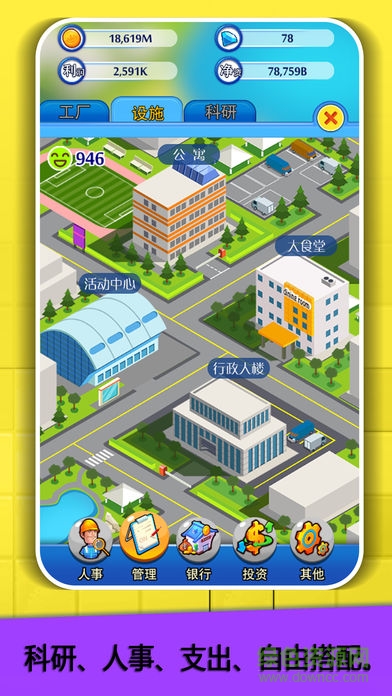 7.未来还将陆续开放各种投资养成设施,包括商业地产投资,科研中心,员工生活区,投资银行,股票投资,以及购买自住豪宅,充分发挥金钱的作用,彰显老板王者荣耀与土豪魅力。