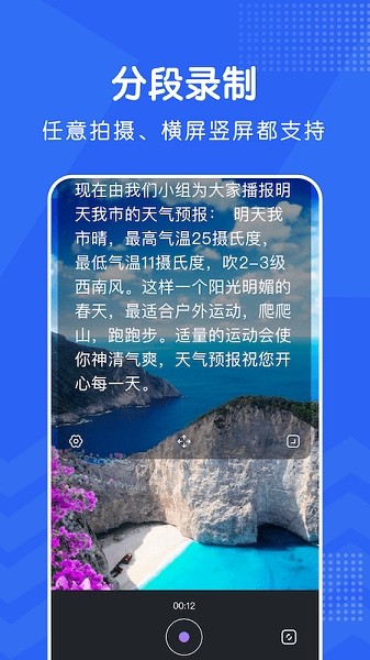 -- 分段录制,任意拍摄、横屏竖屏都支持