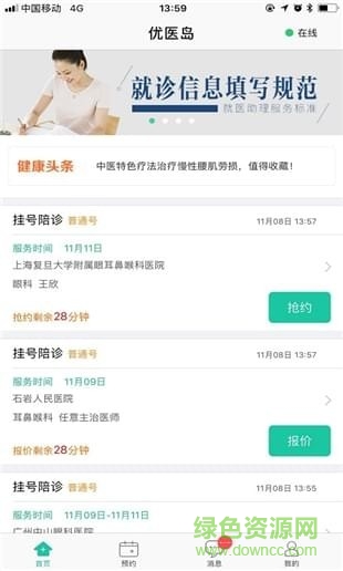 2、优医岛app联合全国4万名执业护士,上万名专业就医助理而打造的集挂号、陪诊、就诊专车服务于一体的现代化移动互联网医疗专业平台。