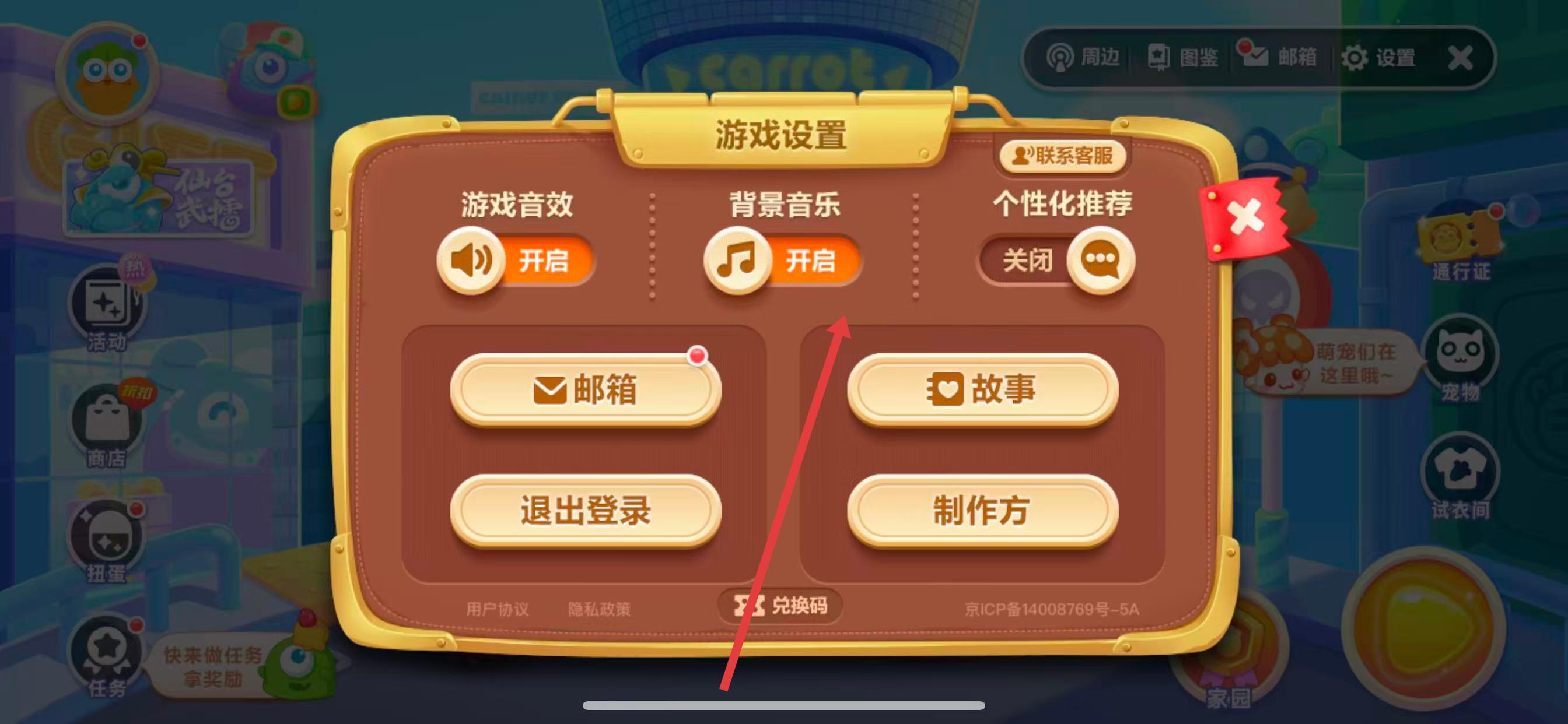 3、找到标注背景音乐的选项,该选项旁有开关按钮,从开启状态切换为关闭状态。