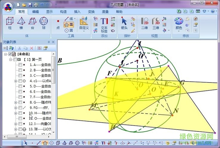 点线面圆、柱锥台球、曲线曲面、轨迹踪迹、组件模型、课件打包,一应俱全。图元选取方法多样,属性修改方便,帮助系统完备,易学易用。