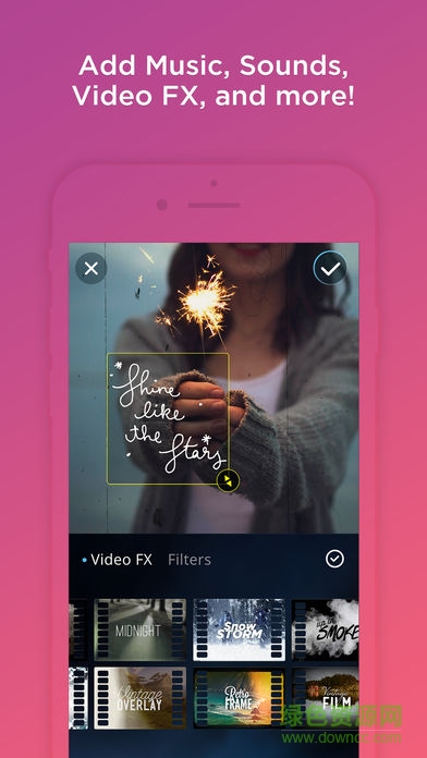 3.添加令人惊叹的视频效果和过滤器:从不断增长的视频效果集合中选择,包括漏光,复古和投影效果,雪和雨模拟等等。