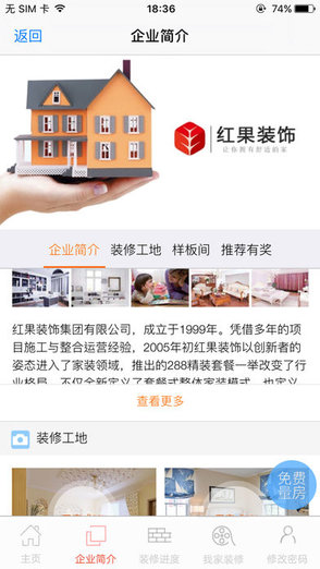 业主打开手机APP客户端首页就可以看到装饰公司的简介和活动介绍,也可以360度看到家里装修情况,及时从线上与设计师交流,这套设备把用户、装饰公司、设计师、施工工人、第三方网站紧密联系起来,解决了消费者对装饰公司不信任的问题,消费者得到了保障。