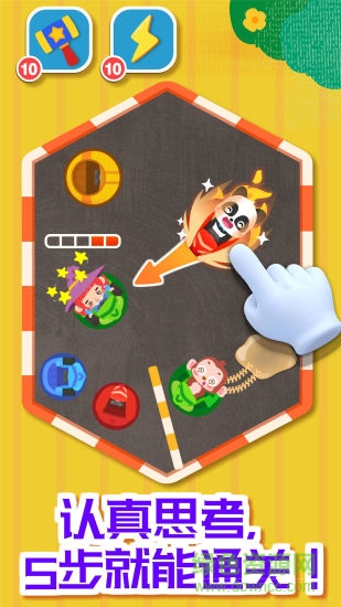 规定通关的步数,这充分考验宝宝脑力。只剩下5步了!要先消除哪种颜色的碰碰车?有更好的行驶路线吗?宝宝快开动脑筋,合理安排步数。