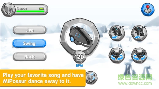 2.舞蹈 - 从手机播放您最喜爱的歌曲,让MiPosaur跳舞。