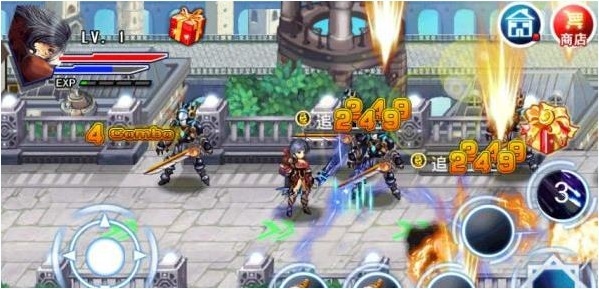 游戏采用横版2D的画面表现形式,有些类似PC端《地下城勇士》的感觉,故事背景设置在一个魔法大陆,这里的人们崇尚武力,随处可见身穿铠甲的勇士。本作画面采用日系风格制作,人物形象非常俊秀,战斗过程的技能光效十足,与靓丽的环境融为一体,很有吸引力。