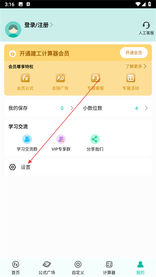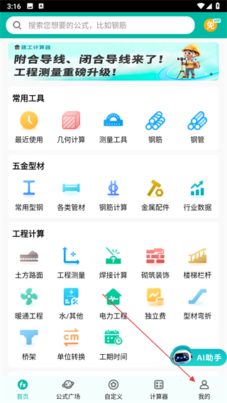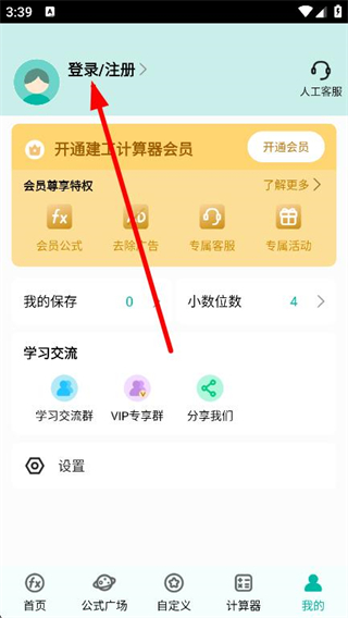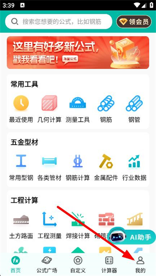 1、打开建工计算器APP,点击我的,进入个人中心页面。