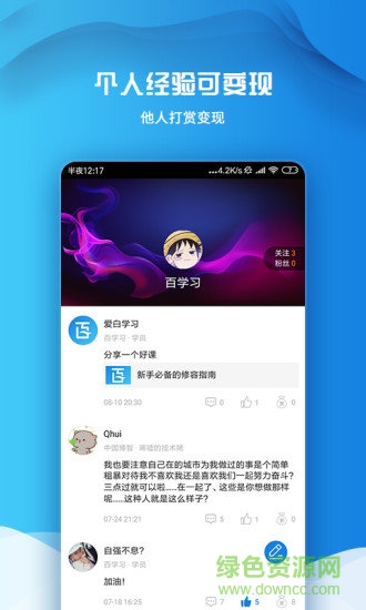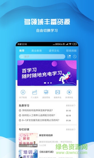 百学习-知识电商平台。涵盖亲子教育、美业教育、职业教育、职场提升、读书听书、两性关系、女性时尚、商业创业等领域的知识付费平台,专注在线教育,拟打造大的知识电商平台。