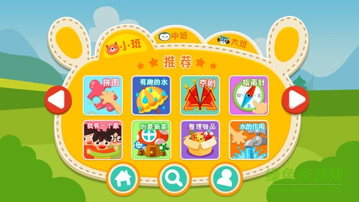 游戏中设有开心宝、大力哥、妙妙、聪明博士等动画人物,陪伴幼儿进行游戏之旅