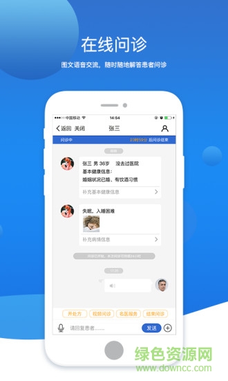 医患沟通:医生、护士和患者之间可以通过文字、图片、语音来进行交流,方便医生和患者之间进行详尽的病情沟通。