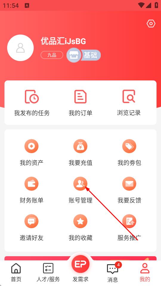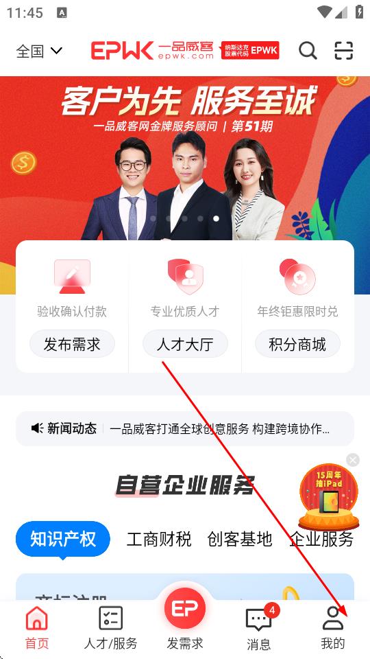 1、打开一品众包APP,点击底部导航栏中的我的。