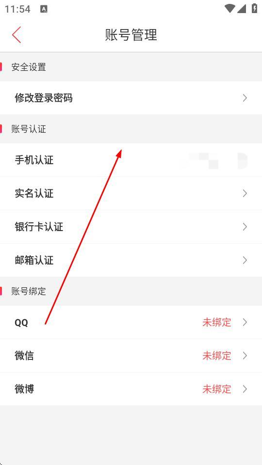 3、进入账号管理页面后,找到并点击手机认证选项。