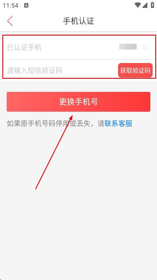 4、在手机认证页面,输入验证码,点击更换手机号,输入新手机号即可。