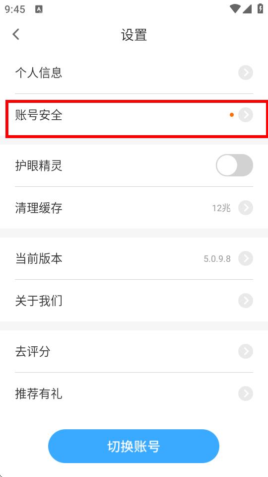 3、在设置页面里,点击账号安全选项,进入账号安全设置界面。