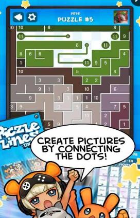 玩家只需要连啊连,将线化为各种图片,玩家如果成功将所有的数字都连起来,隐藏的奖励图像就会露出真身!在故事模式中,玩家需要不断的攻关,解锁总计多达100个谜题关卡,收集各种隐藏的图像,乐趣十足。而在拼图模式中,分为多个领域的“运动”、“宠物”、“座驾”等随便挑战,总共10个主题共200个以上的关卡等着玩家。