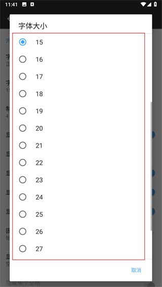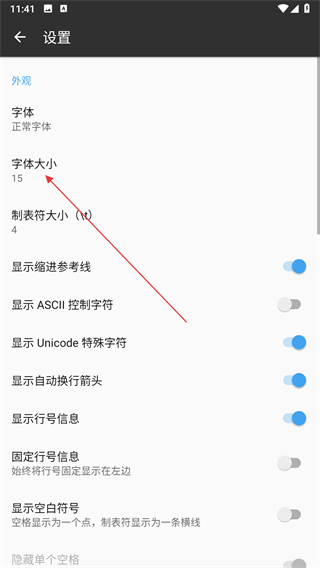 3、在设置页面里,找到字体大小选项,点击该选项。